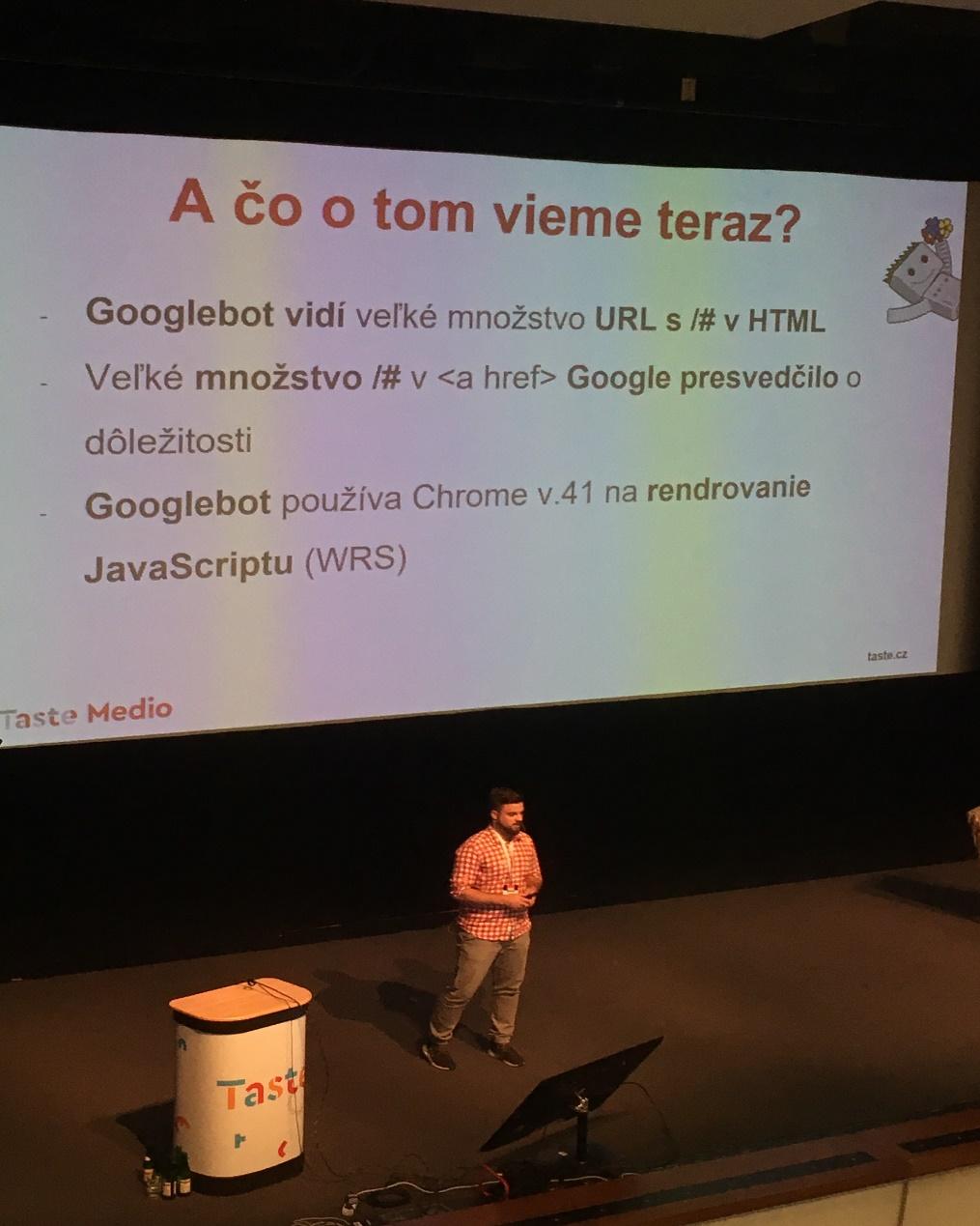 Richard Klačko svou prezentaci s názvem Google nám vzal 3 miliony, dostal se za mříže, obehnal tajemstvím. Příběhy má každý rád, a tohle byl příběh o tom, jak Google zaindexoval z jednoho webu neuvěřitelné 3 miliony stránek. Nedostal se za to do vězení, ale „dostal se za značku #“. Problém byl ve filtraci. Google viděl velké množství URL s /# v HTML a také v <a href>. To ho přesvědčilo o důležitosti stránek a tyto stránky zaindexoval. GoogleBot překvapivě získal informace i renderováním JavaScriptu. Naštěstí všechno dobře dopadlo a Army shop – Armed.cz si mohl vydechnout. Agentura Taste Medio problém vyřešila pomocí úpravy odkazů ve filtraci a zdrojového kódu. Co bychom si z toho měli odnést?